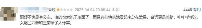 就如网友在豆瓣批驳的那样“演的也太流于名义了...台词更是个差劲”,这对于一直以演技著称的赵丽颖来说,无疑是一个千里重的打击。